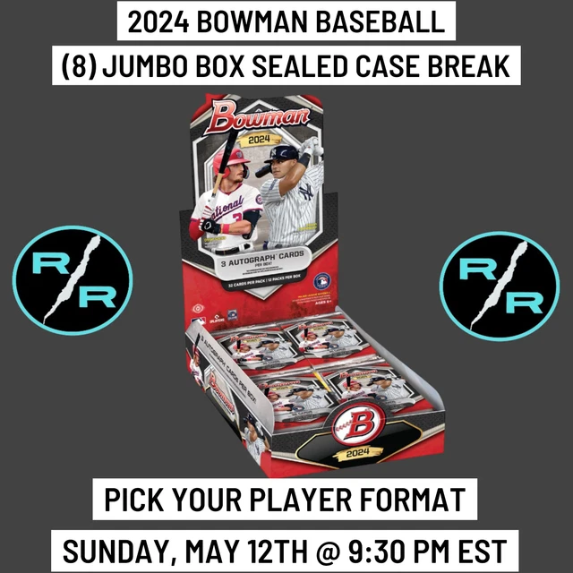 2024 Bowman Baseball Jumbo Box Case. 2024 bowman baseball hobby 12 box case, the future of baseball is here. Each 2024 bowman baseball hobby jumbo box contains three chrome autograph cards!